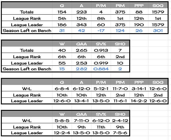 As we dissect the numbers from the week, we can see that we left a golden opportunity on the bench. If you manage to look past the two extra power-play points, you will notice we left a staggering 41 shots on the court.