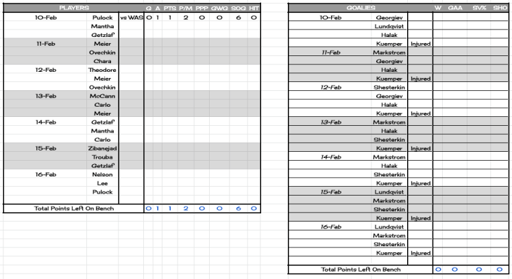 For the second straight week, we only secured one offensive category win. The majority of our points came off the backs of our goalies, who won all four of their categories.