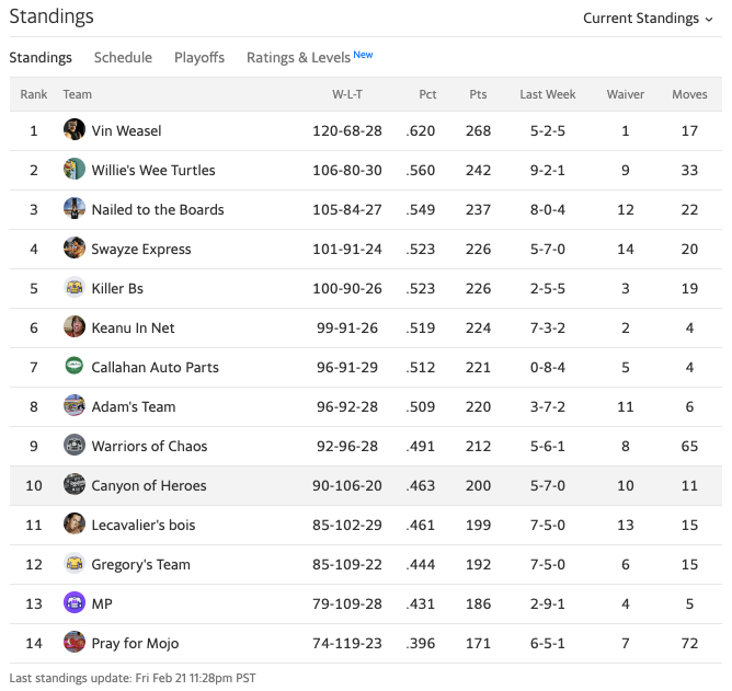Stay tuned for next’s week recap of the Canyon of Heroes 2019-20 fantasy hockey season.