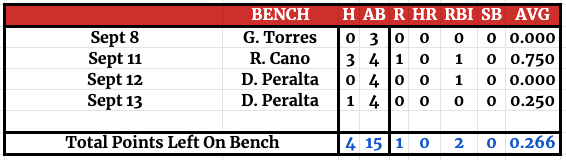 Despite opportunities daily, Sanchez just couldn’t get the job done. To secure points for the matchup, we signed Reyes, who was riding a bit of a hot streak at the plate.