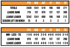 With another week in the books, we witnessed some changes in our overall numbers. Thanks to our victory, we improved a spot in both the points (7th) and steals (1st) categories while staying in the top spot in rebounds and blocks. We slipped down a notch in turnovers down to 3rd, and we remain the 9th worse team regarding assists.