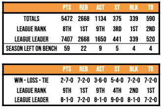 Even though the team is deep into a four-game losing streak, our overall statistics have stayed neutral. We remain the top team in the league in regards to rebounds and blocks. No matter who we employ, we can’t make any headway in turnovers, where we remain the second-best team for the eighth straight week.