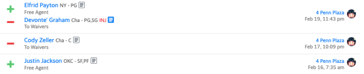Cody Zeller (Charolette) was another player who just wasn’t getting the job done, so he was sent to the waiver wire. He was joined shortly after by his teammate Devonte’ Graham, who wasn’t scheduled to return to the lineup anytime soon.