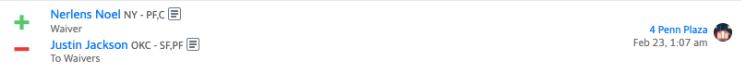 After Jackson failed to mustard more than 25 points in his last two weeks, we cut the Oklahoma City forward in favour of a New York Knicks player, Nerlens Noel. The power forward has found his playing time jump up due to injuries and should have the opportunity to score more points and contribute to a desperately needed turnaround.