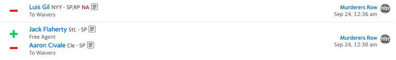 The Row had their matchup under control from the first pitch until the final out. After Aaron Civale (Cleveland) had a subpar outing early in the week to continue expanding the team’s ERA totals, he went to the waiver wire for Jack Flaherty (St. Louis).
