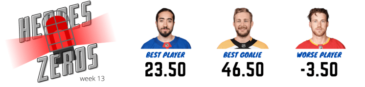 In Calgary, where the Flames have cooled off after starting the season firing on cylinders, the Rock found two of their worse players. Elias Lindholm finished the week with -3.50 points because he only had two shots on goal and was minus-two. His teammate Ramus Andersson (-1.50) was the only other player who failed to stay on the positive side of the scoresheet.