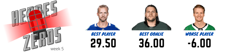 On the flip side John Klingberg (Dallas) had a pretty lousy week, collecting a team worse negative-six points in seven days. Klingberg was a minus-three in limited action and didn’t register a shot on goal, hit, or blocked shot.