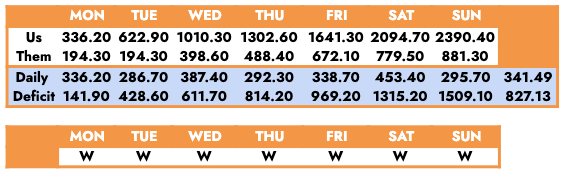 This matchup was never close outside of Monday as the Plaza averaged 341.49 points a day and ran a daily deficit of 827.13 points. The undefeated week marked the third time the boys didn’t trail in a matchup.