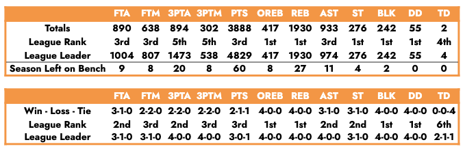 The most significant shift in standings occurred in triple-doubles, where the Plaza now ranks fourth overall. There was no change in numbers in the six other categories, free throws, three-pointers, points, and assists.