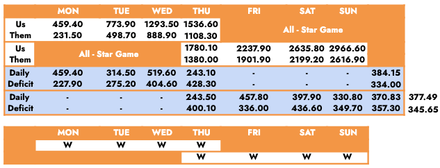 Week 18 took place during the NBA All-Star Game, so there were only days of action, but it was stretched over two weeks.