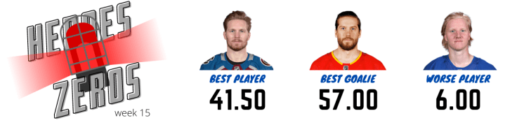There were no negative point collectors in the lineup this week; however, the worse player award had to go to someone. Unfortunately, that player was Rasmus Dahlin from the Buffalo Sabres. The young defender finished the week with 6.50 points thanks to five shots, four hits, and two blocks. The only knock on his totals was a minus-one rating which cost him a few points.
